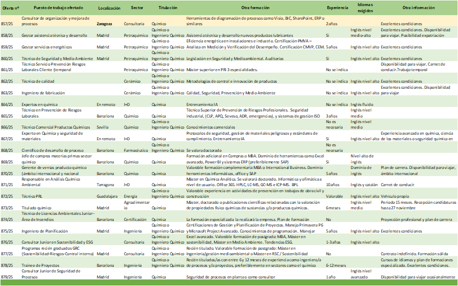 23 NUEVAS OFERTAS DE TRABAJO hemos recibido en la semana 48, de 24 de noviembre en el Colegio Oficial de Químicos para titulados en Química, Biotecnología, Bioquímica, Ingeniería Química, Ciencias Ambientales,…