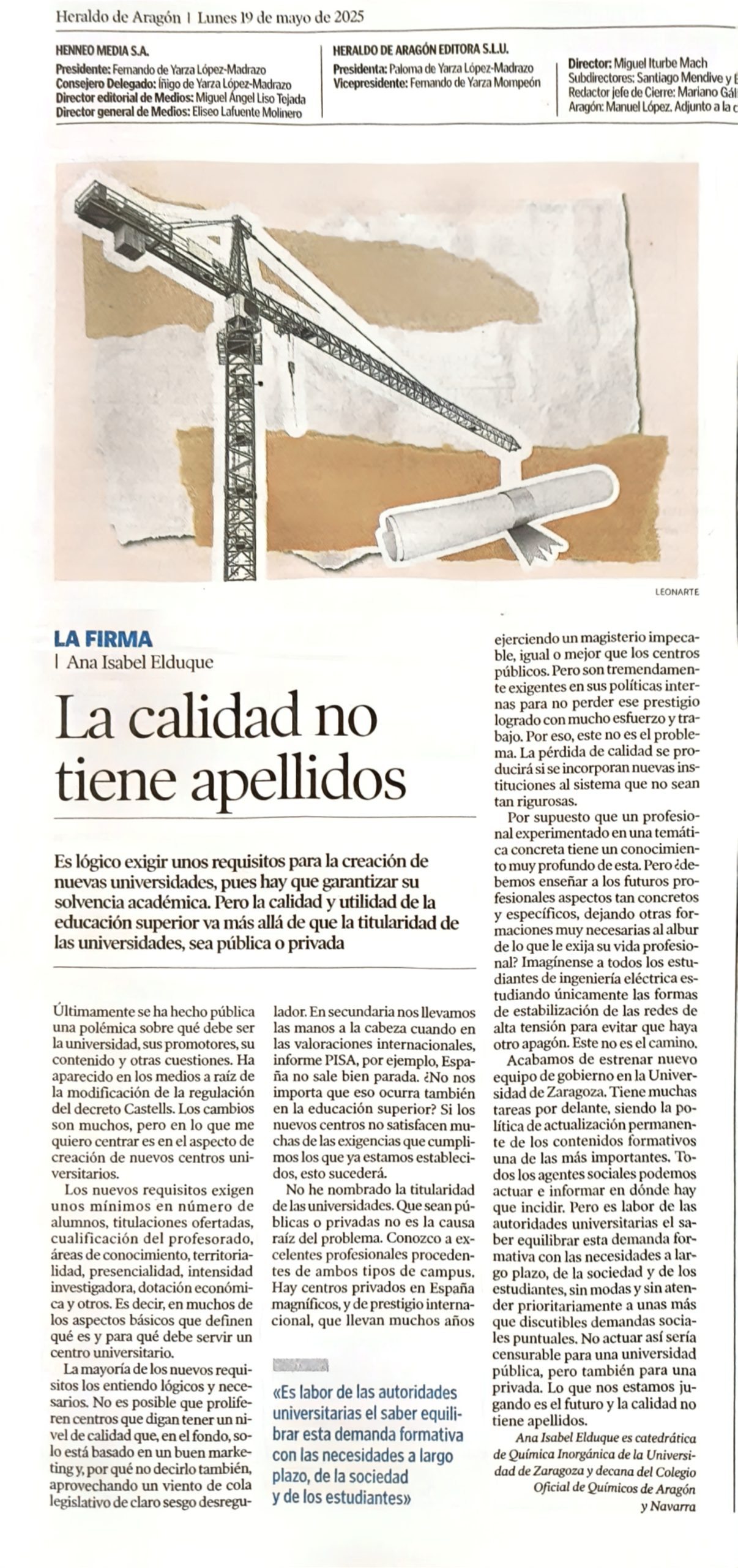 La calidad no tiene apellidos. Heraldo de Aragón. Ana Elduque. 19.05.2025