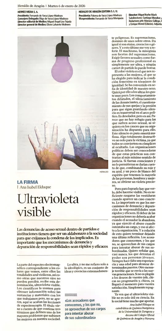 Publicaciones de la decana, Ana Elduque, en Heraldo de Aragón