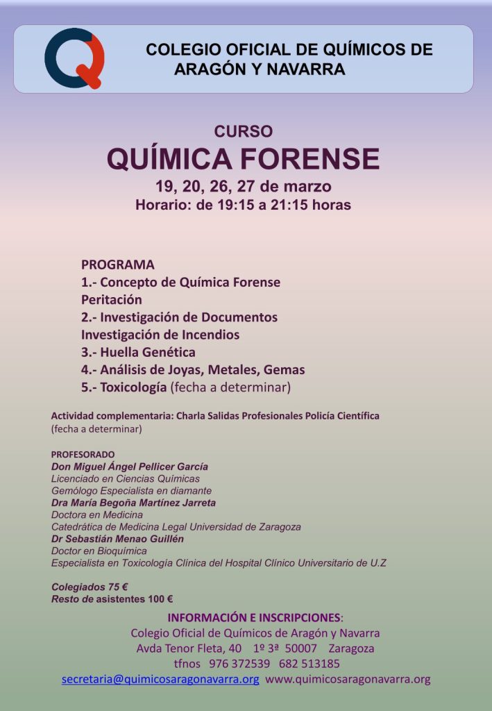 Curso sobre el papel de la Química en el ámbito forense y legal. Mostrar la conexión entre la química y la vida cotidiana, para facilitar la resolución de cuestiones forenses y legales.