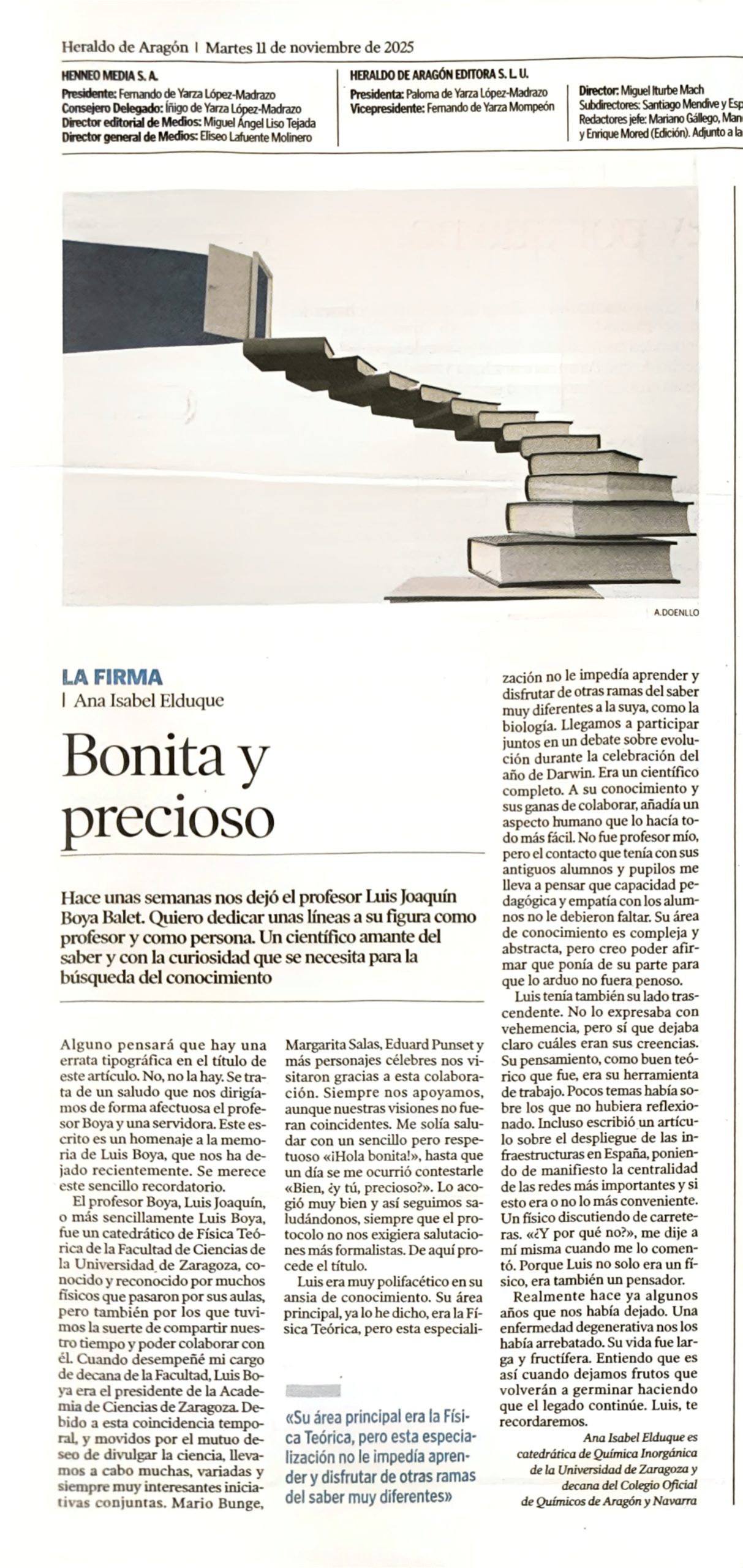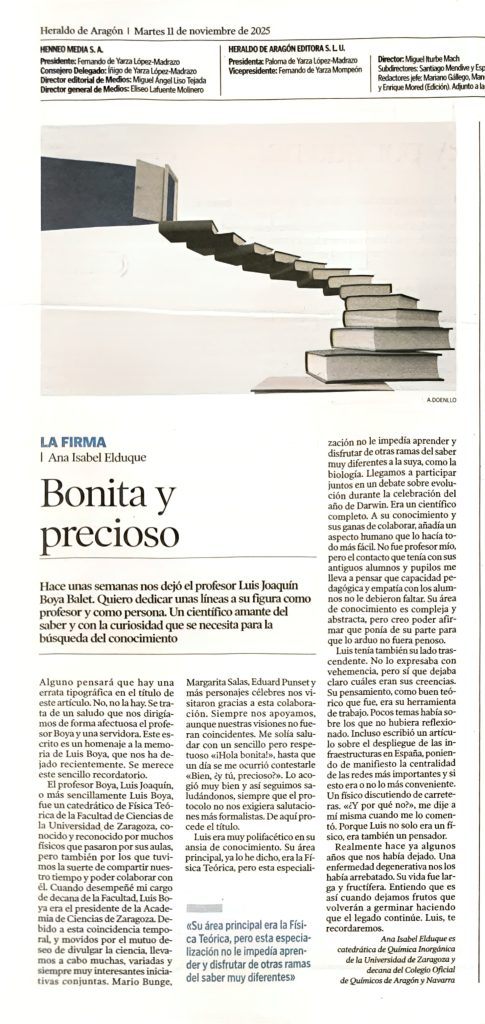 Colaboración de la decana, Ana Elduque, en Heraldo de Aragón, de 11 de noviembre «Bonita y precioso»